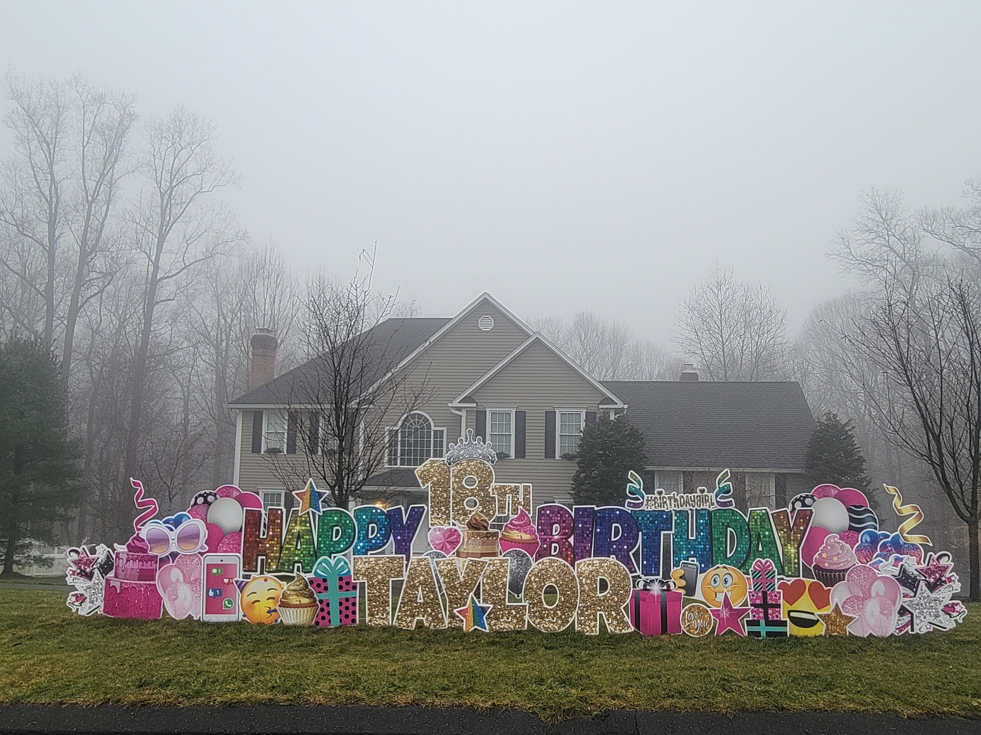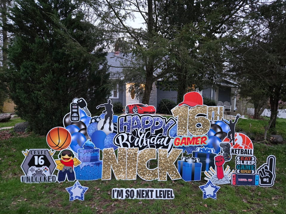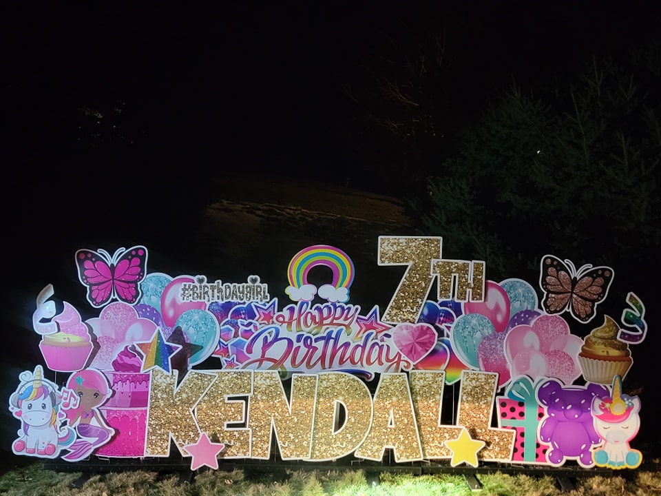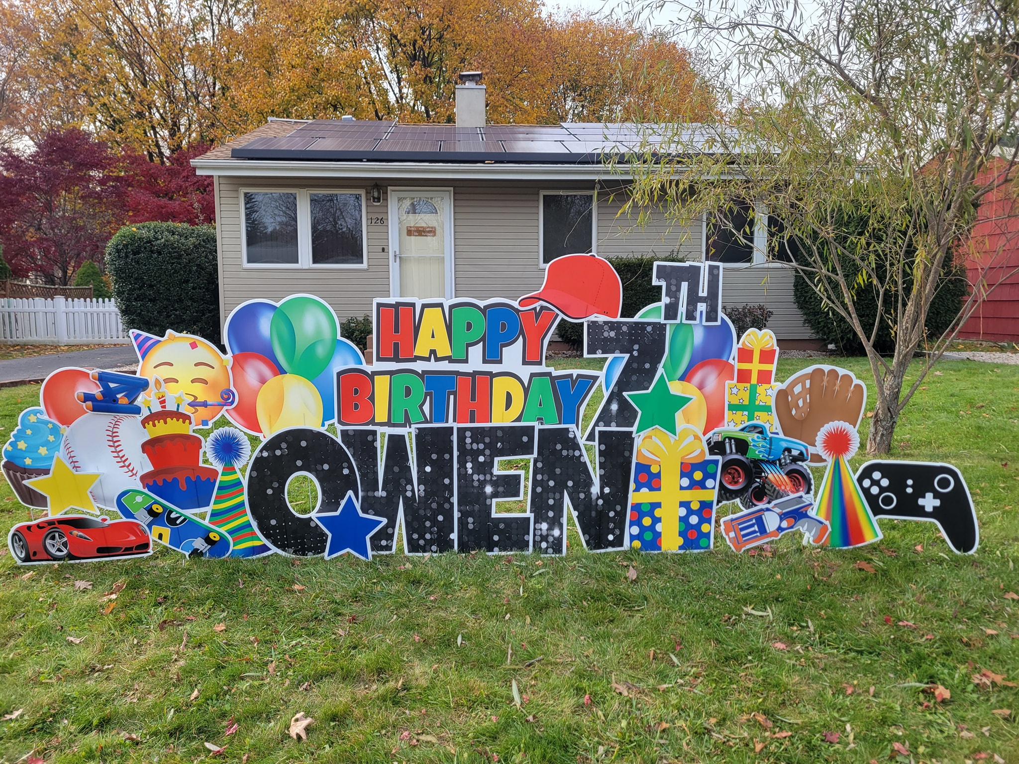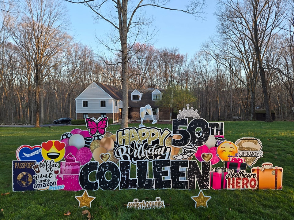 Our happy birthday custom yard card displays are the answer! Let us know some of the birthday celebrant’s favorite things and we will create a one of a kind greeting just for them! Check out some samples of our Theme Signs