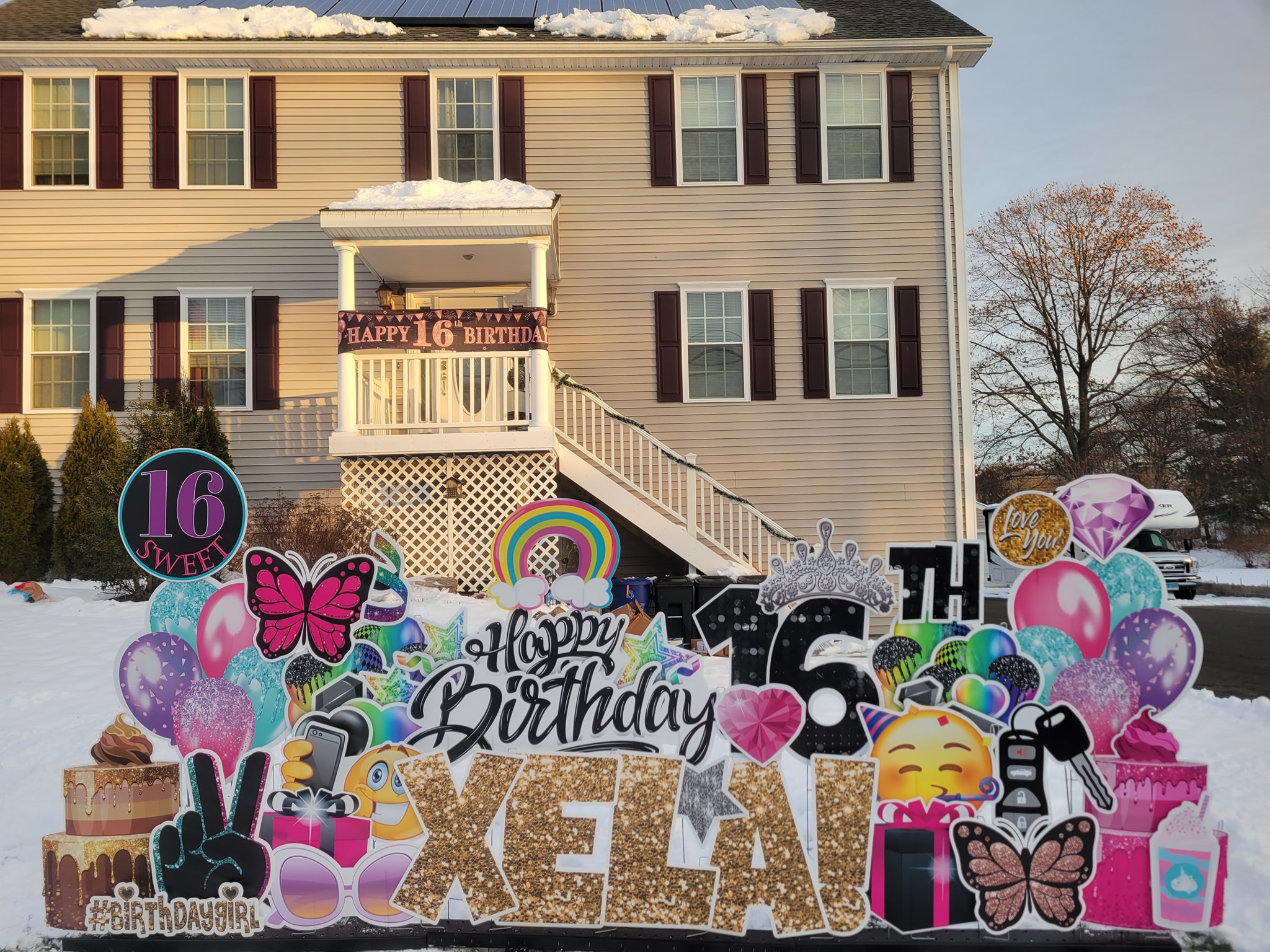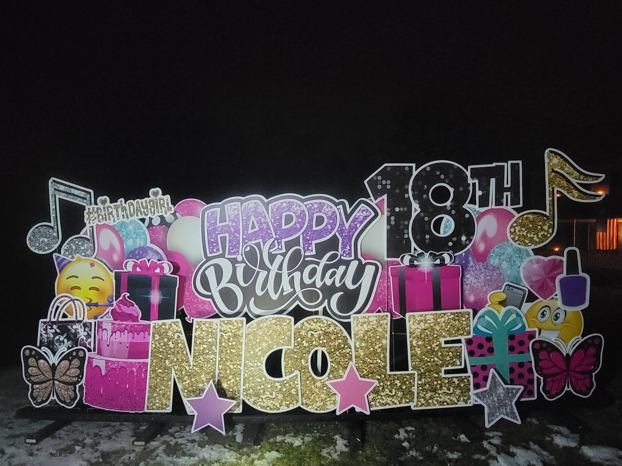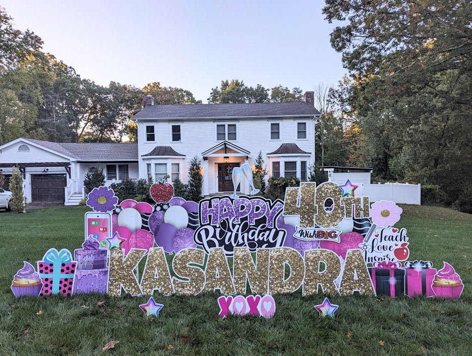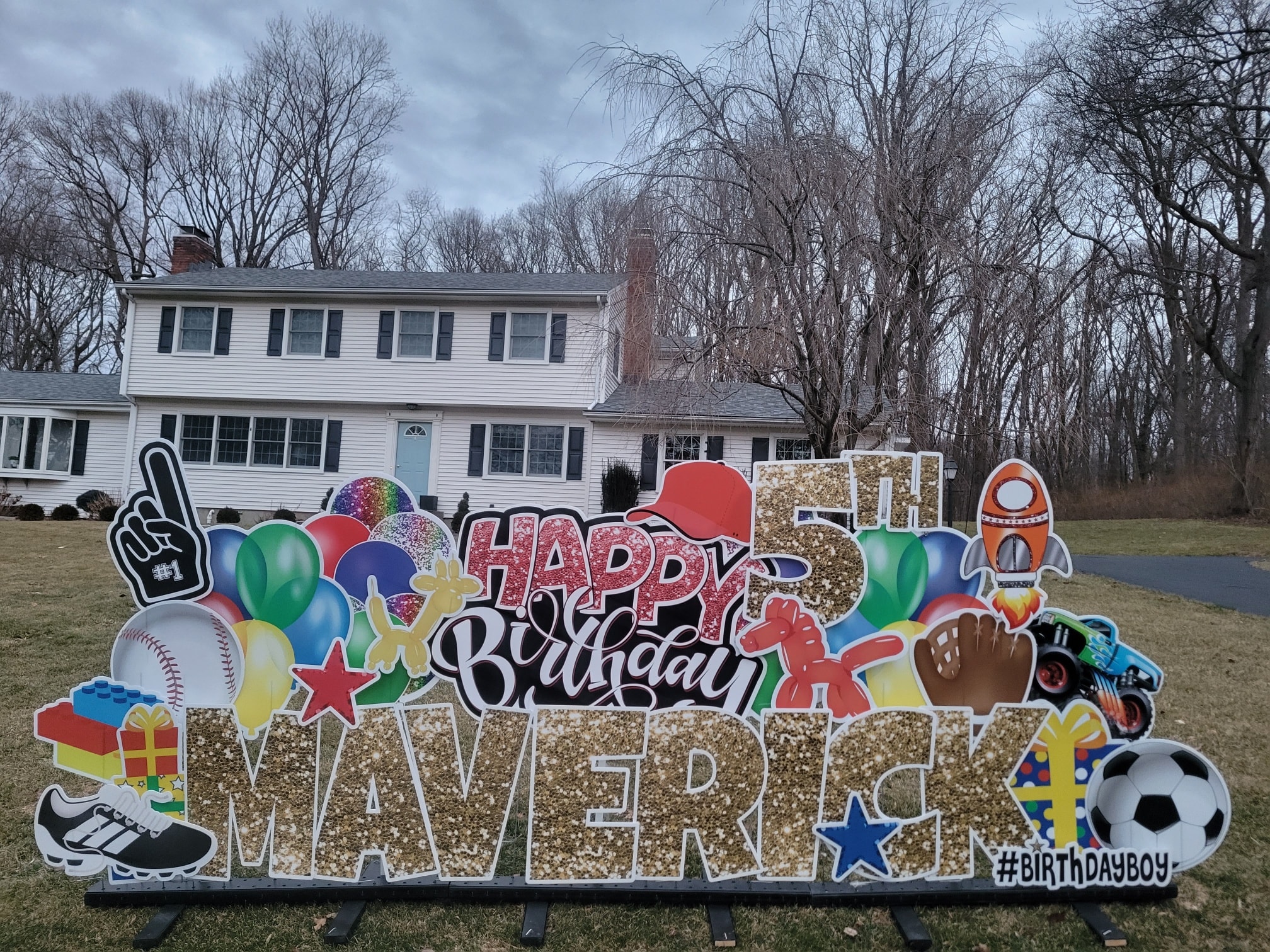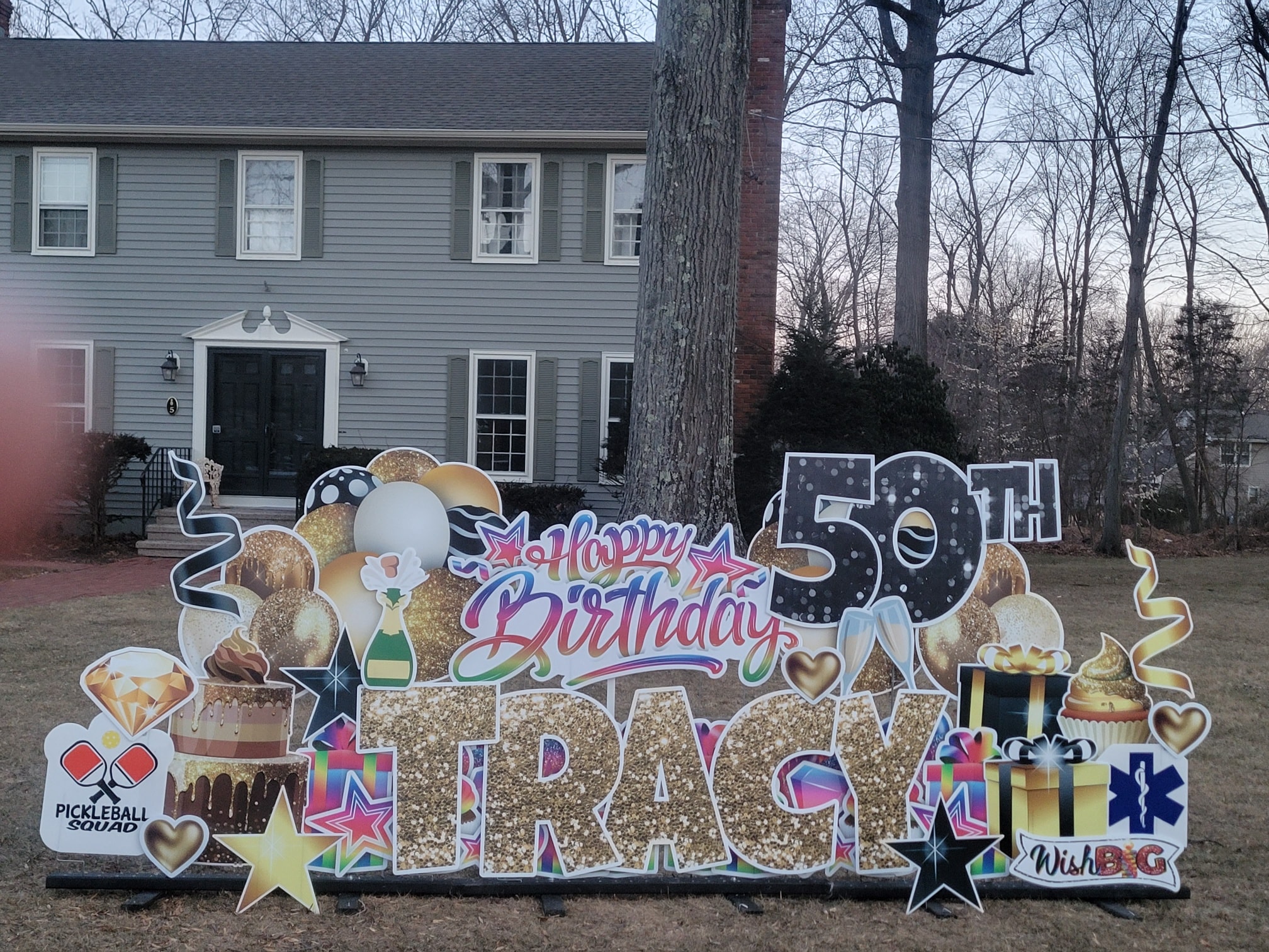 Our happy birthday custom yard card displays are the answer! Let us know some of the birthday celebrant’s favorite things and we will create a one of a kind greeting just for them! Check out some samples of our Theme Signs